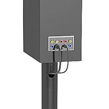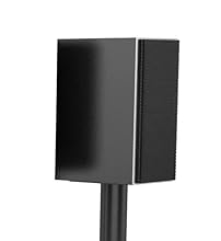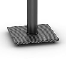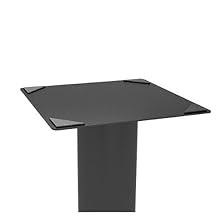 The Atlantic Bookshelf Speaker Stand in black is comprised of 2 speaker stands, each with 45-degree adjustable mount. A wire management accessibility hole helps keep your speaker wires concealed and neat. 4 adhesive strips and 4 spike studs provide 2 surface options. The speaker plate is 6 inches by 6 inches to hold larger bookshelf speakers secure. The whole stand sits on non-marring feet. Holds up to 20lbs. bookshelf-style speakers.