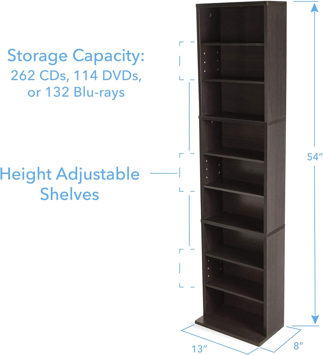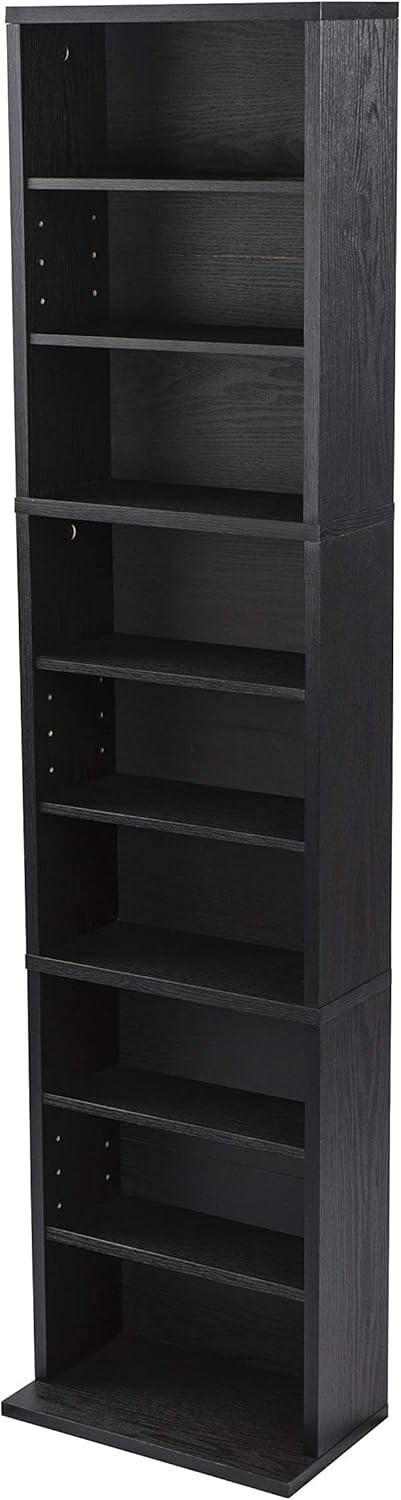 Use Summit’s flexible combination of shelving options creatively to keep your prized collections of music, movie, video games, toy figurines, rare coins, mineral stones or sports memorabilia well protected and organized. Slender space-saving footprint and clean outline help the Atlantic Summit media storage cabinet to blend in easily with just about any style of home decoration. With various shelving options, Summit maximizes storage capacity to accommodate various types of contents while occupying space measuring 13” x 8”. Easy assembly and easy-to-clean surface provide a quick solution to protect your valuable collections while showcasing them in an organized and professional manner. Extended base and included wall anchoring brackets provide additional stability and safety. For best results, always place the Summit on a leveled surface, load heavier and larger items on the lower half of the cabinet to balance the weight, and ALWAYS install the included wall anchoring brackets. Enjoy!