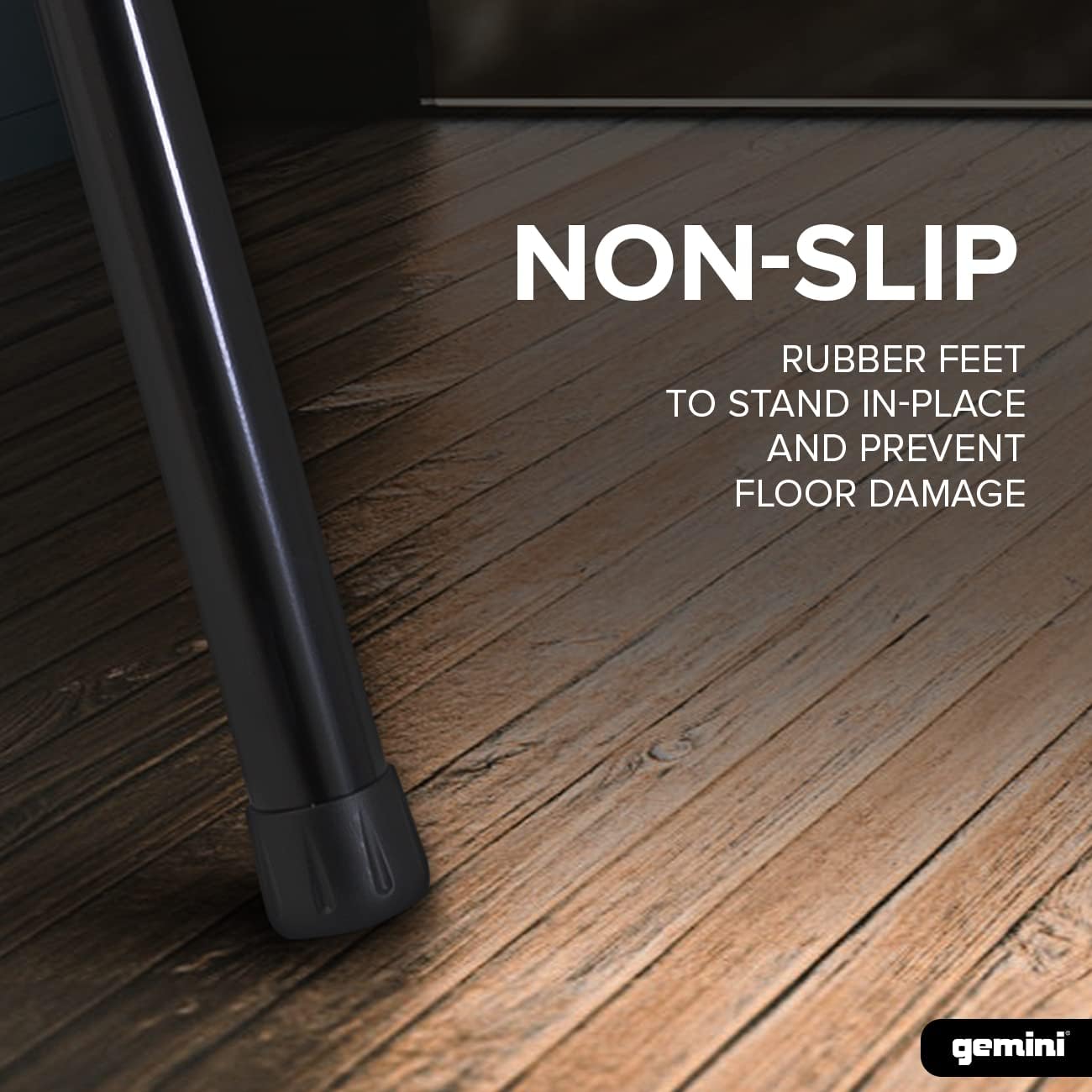 Gig-Ready! Take it on-the-go with ease. Adjustable telescoping tube and collapsible legs allow for quick assembly and break-down.