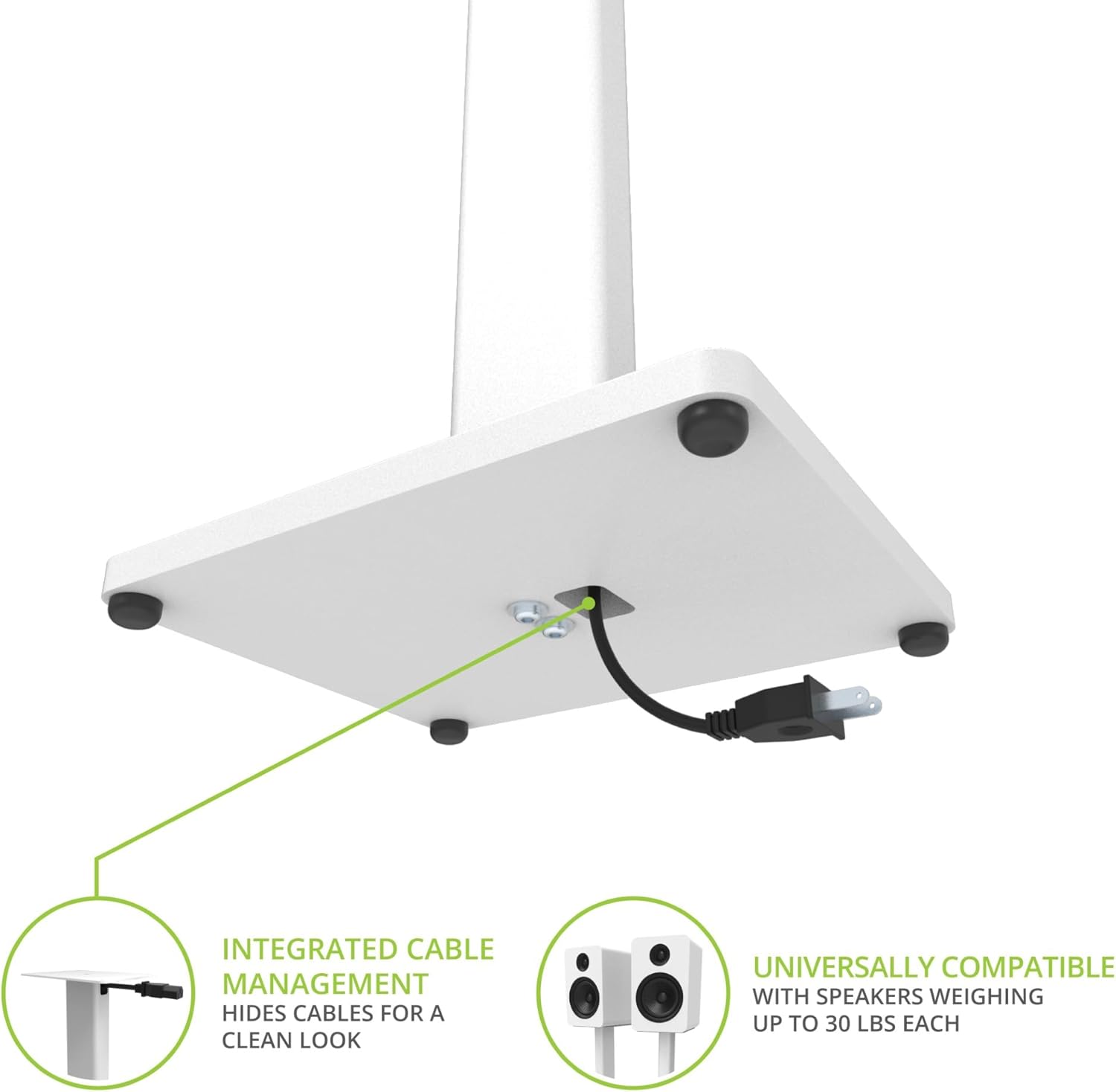 Kanto ST28 28” Universal Speaker Floor Stands for Bookshelf Speakers up to 30 lbs | Improved Sound | Hidden Cable Management | White MDF Base | Pair