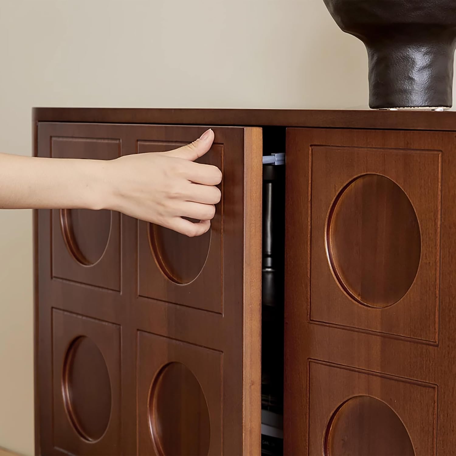 This mid-century TV stand is a charming piece. It features classic symmetrical aesthetics with a walnut finish that exudes warmth and natural charm, complementing all indoor styles. Crafted from solid wood veneered board, it's sturdy and durable. With ample storage space and excellent craftsmanship, including arc-corner design and a sleek piano paint finish, it's both practical and beautiful. Pre-assembled with easy base installation, it's a great choice for any home entertainment setup.