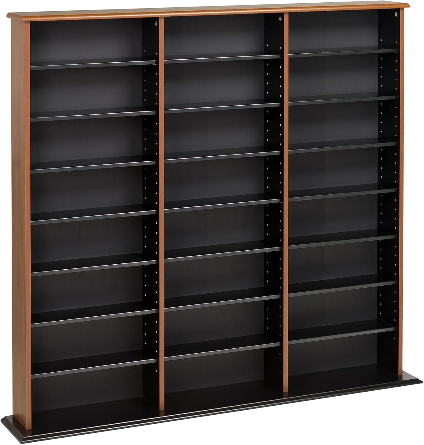 Prepac 3 Column Tall Cabinet Media Storage, Triple Width Wall, Cherry/Black